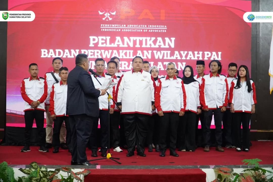 Gubernur Sumatera Selatan H. Herman Deru menghadiri pelantikan Badan Pimpinan Wilayah (BPW) Perkumpulan Advocaten Indonesia (PAI) Sumatera Selatan periode 2025-2030 dilantik langsung oleh Ketua Umum PAI Dr. Sultan Djunaidi, S.Sy., M.H. diselenggarakan di Hotel Swarna Dwipa Palembang, Senin (26/5/2025).