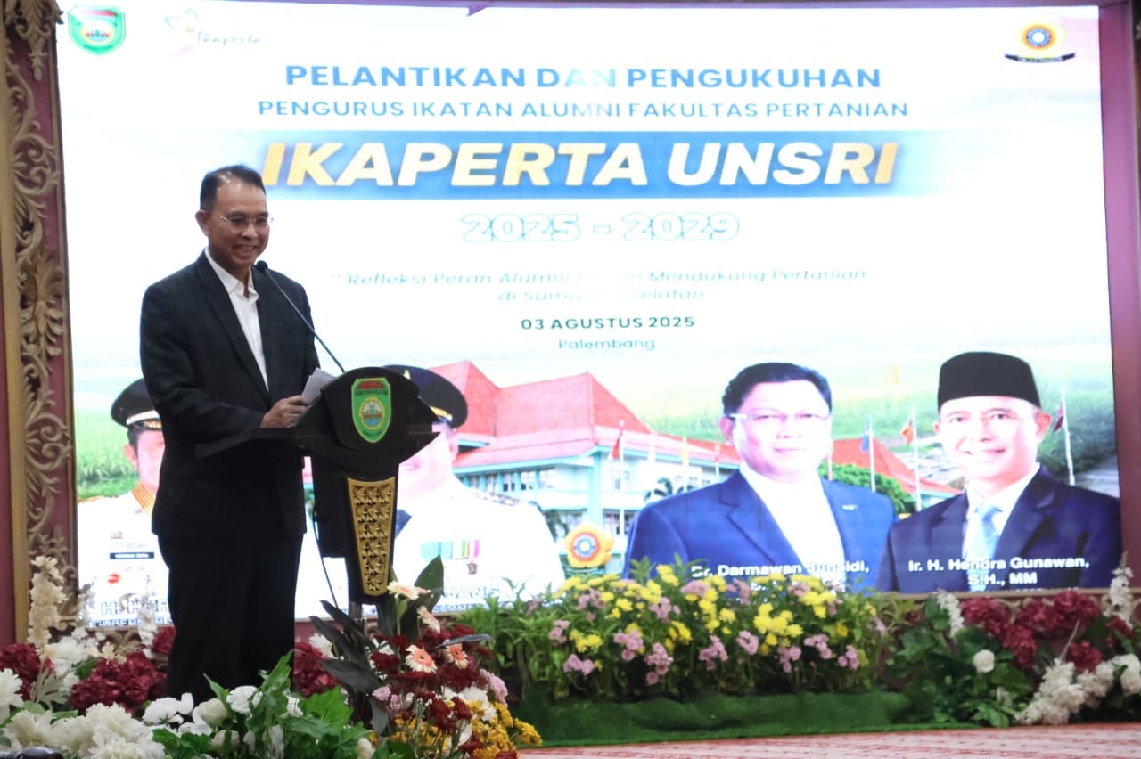 Pelantikan dan Pengukuhan Pengurus Ikatan Alumni Fakultas Pertanian Universitas Sriwijaya (IKAPERTA UNSRI) periode 2025–2029 dihadiri Sekda Provinsi Sumatera Selatan Edward Candra bertempat di Griya Agung, Minggu (3/8/2025).
